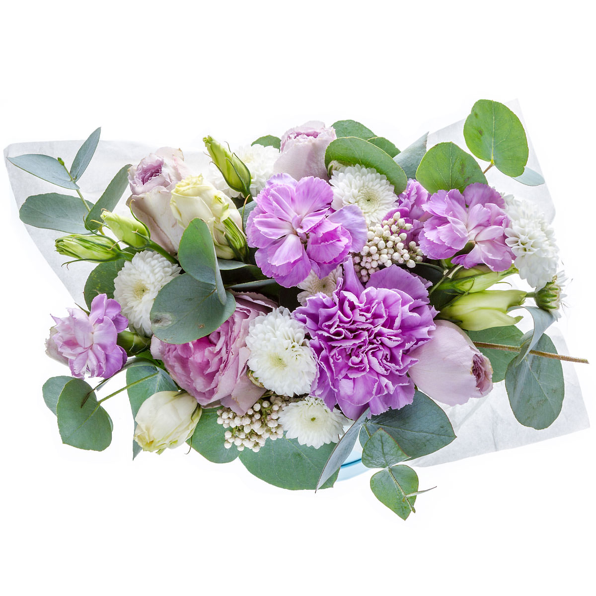 | Состав | Маттиола, Эвкалипт, Розы, Кустовые розы, Гвоздики, Хризантемы, Пионовидные розы |
