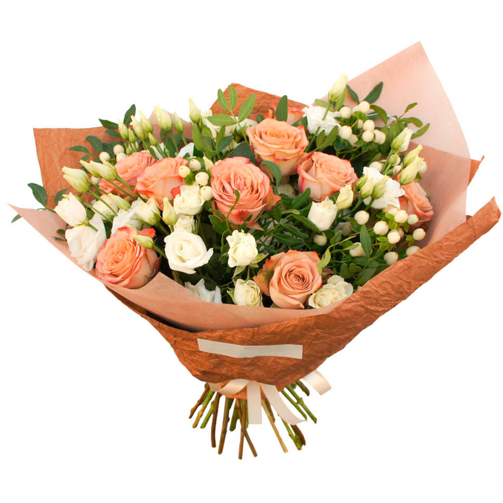 | Состав | Розы, Кустовые розы, Эустомы |