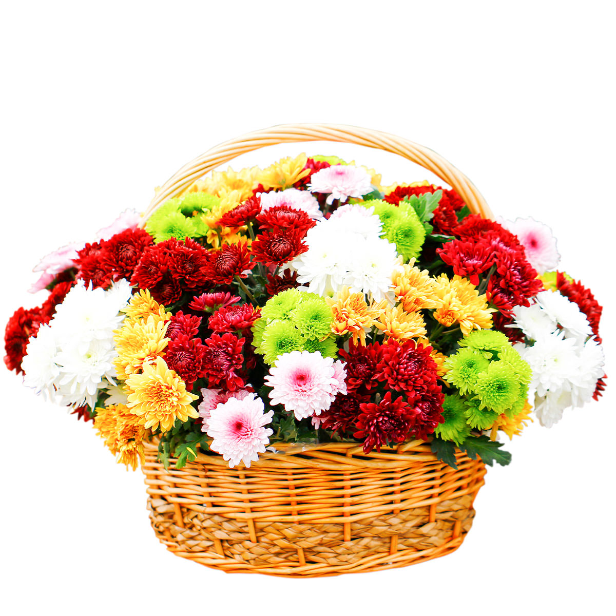 Корзина с хризантемами «Цветочный калейдоскоп» с гарантией качества, цены и быстрой доставки!