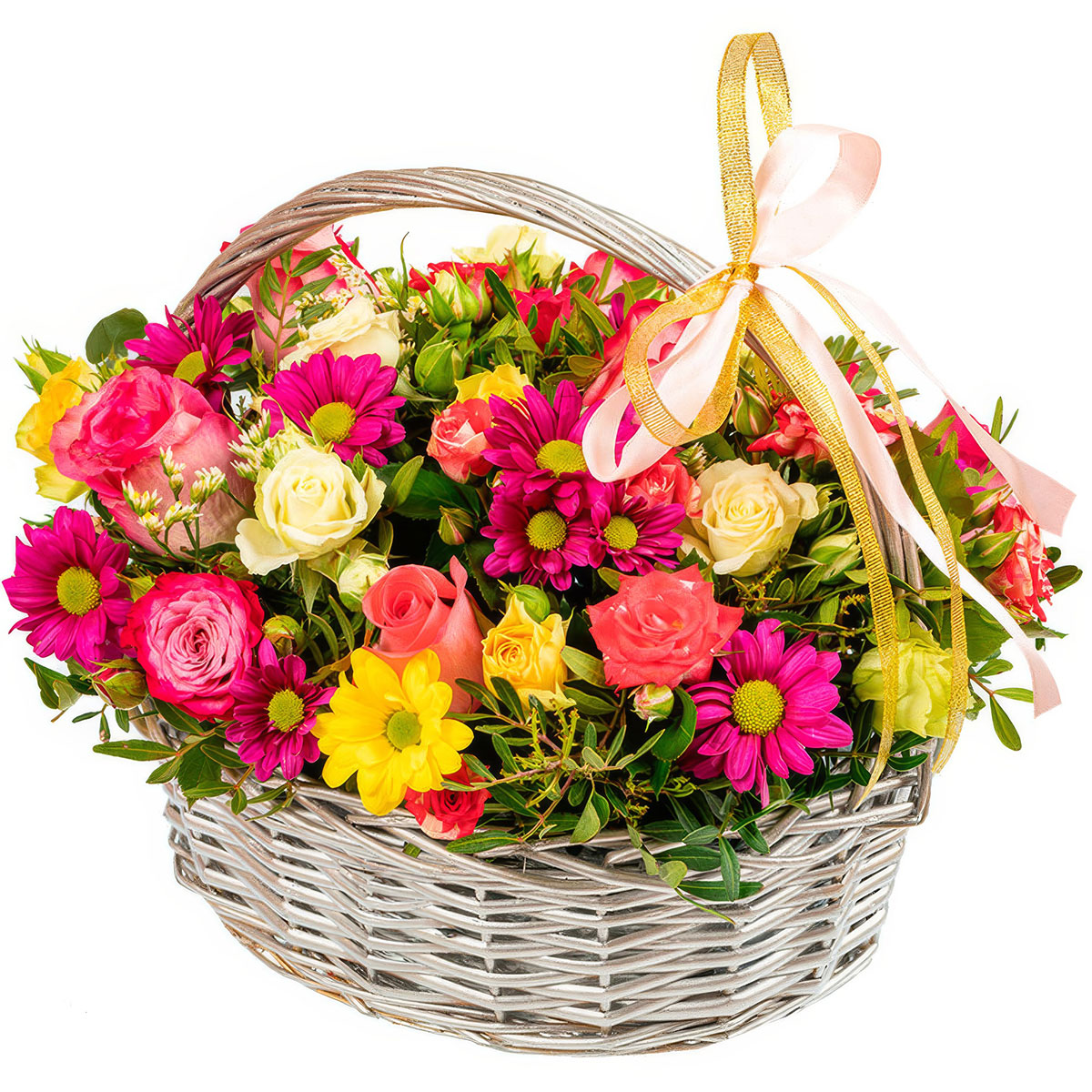 Корзина с цветами «Праздничное сияние» с гарантией качества, цены и быстрой доставки!